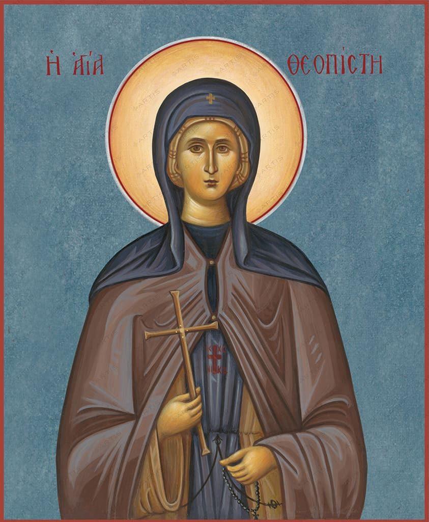 Αξίζει επίσης να σημειωθεί και η εορτολογική μετατόπιση της μνήμης της οσίας Θεοπίστης κατά μία ημέρα που σημειώνεται στην Ακολουθία του 1853. “Τῷ αὐτῷ μηνί τετάρτῃ Αὐγούστου μνήμη τῆς ὁσίας Θεοπίστης θυγατρός τῆς ἁγίας Θεοδώρας”.