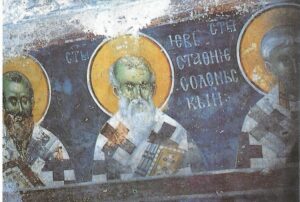 Στο κέντρο ο Άγιος Ευστάθιος. Εκκλησία του Κράλη, Στουντένιτσα Σερβίας, τοιχογραφία, 1314.